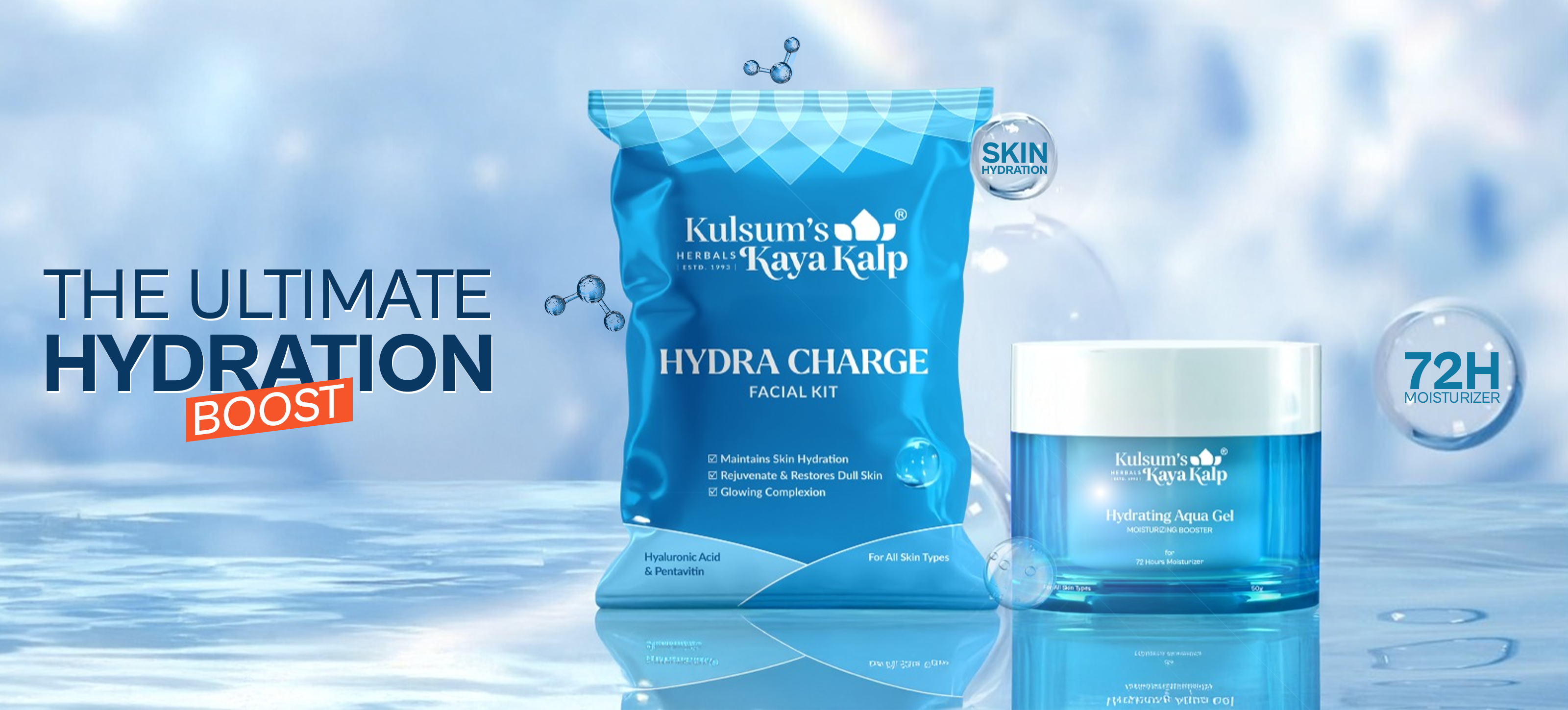 Hydration Combo, Hydra Charge Facial Kit & Hydrating Aqua Gel for 72 Hours Moisturization