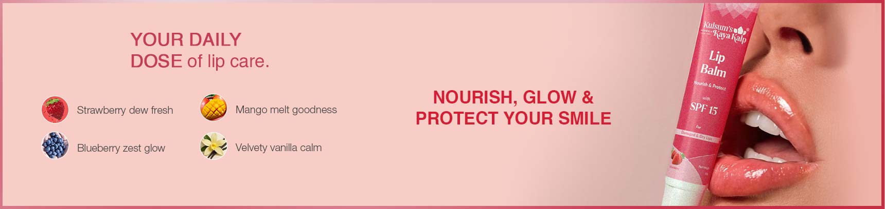 Our premium lip balms are designed to transform your lip care routine as we believe that your lips also deserve the best care. Kulsum’s Kaya Kalp is replete with the best lip balm for dry lips and a range of a moisturizing lip balm with SPF. If we talk about fruity flavours, then we have got you covered, whether you are looking for strawberry lip balm or everyone’s favourite vanilla, we have all of them. Explore the perfect lip balm online and elevate your skincare game effortlessly.